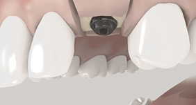 - Durch eine dreidimensional navigierte Vorgehensweise kann die prothetische Erstversorgung sofort nach der Implantatsetzung erfolgen.